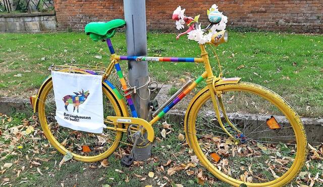 Wenige Tage später wurde der Verein von einer Anwohnerin informiert, die ein Fahrrad am Ortsrand im Feld gesehen habe. „Es war das alte Denkmal-Fahrrad“, berichtet Sybille Busse vom Vorstand des Vereins. Der oder die Diebe hatten es blau übersprüht, berichtet Busse. Die Polizei hat den Vorgang aufgenommen und das Fahrrad wurde dem Verein übergeben. „Es wird wieder schön bunt gemacht und einen geeigneten Standort finden“ sagt die Vereinssprecherin.