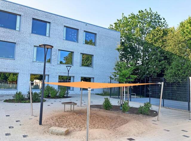 Noch im alten Schuljahr wurde auf dem Außengelände an der Grundschule Am Castrum, die bis zur Fertigstellung ihres Neubaus noch im zukünftigen Komplex der Grundschule Am Langen Feld untergebracht ist, ein Sonnensegel errichtet. Es soll Schatten spenden für eine unter dem Segel vorhandene Sandkastengrube. Rund 5000 Euro hat es gekostet – und wurde bereits ersetzt nach einem Vorfall. Doch nur rund zwölf Stunden nach der erneuten Installation war es schon wieder kaputt, unbekannte Täter hatten ein großes Loch in den Stoff geschnitten beziehungsweise gebrannt. Auch bei der Kita Langes Feld gab es einen Sonnensegel-Vorfall.
