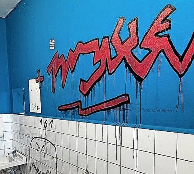Sorgen für unnötige Kosten: Im Schulzentrum Am Spalterhals kommt es immer wieder zu Schmierereien in verschiedenen Trakten.foto: privat