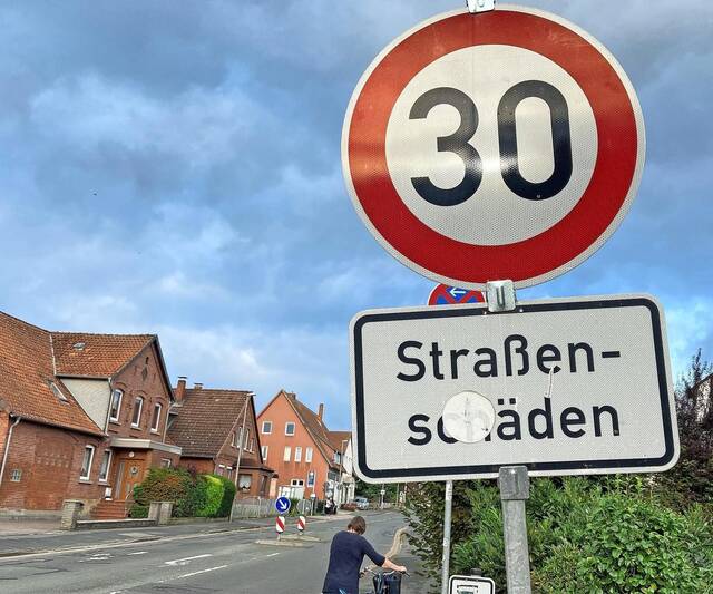 Zahlreiche Unebenheiten, mehr oder weniger tiefe Risse, kleine Schlaglöcher und viel Flickwerksorgen für eine reichlich holprige Oberfläche. Dort, wo es besonders schlimm ist, wurde wegen der Straßenschäden ein Tempolimit verhängt. So darf etwa auf der Stoppstraße zwischen der Baulücke, die durch den Abriss des Deutschen Hauses entstanden ist, und der Kreuzung Stoppstraße/Landstraße nur noch Tempo 30 statt 50 gefahren werden. Dasselbe gilt für die Siegfried-Lehmann-Straße zwischen Bahnhofstraße und Einfahrt zum ASB.