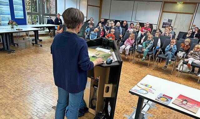 Wüppen wechselt sich mit ihrer Mitstreiterin Maren Scherfenberg bei den Vorlesestunden ab. Seit dem Auftakt geben die beiden Ehrenamtlichen bis heute einmal im Monat in der Stadtbücherei eine Vorstellung – für Kinder ab einem Alter von vier Jahren, kostenlos, mit Aufruf zu freiwilligen Spenden.