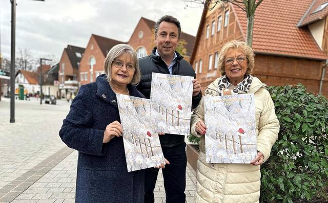 Für eine gute Sache: Carola Bernhards (von links), Michael Gruber (Verkaufsleiter Regionalverlag West bei HAZ und NP) und Brigitte Gellert zeigen den Adventskalender des Lions-Clubs.Foto: Dirk Wirausky