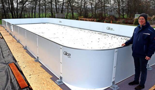 Zur neuen Ausstattung zählt nun aber auch die synthetische Schlittschuhbahn mit 80 Schuhpaaren: „Die Anlage funktioniert ohne Strom und Wasser“, sagt der Trägervereinsvorsitzende. Es sei aber notwendig, die Kufen gut zu schleifen.
