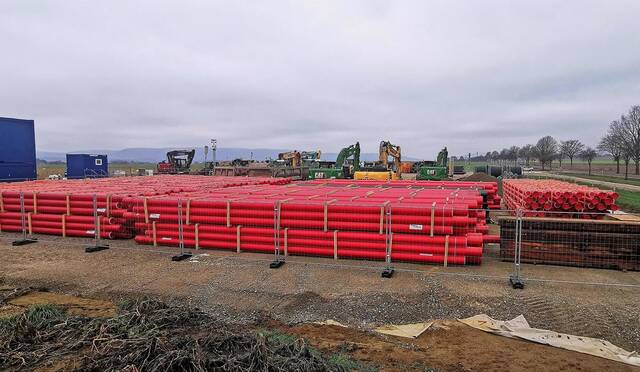 Bis die Kabel eingezogen werden können, wird es wohl noch einige Monate dauern. Der aktuelle Plan sei, dass sie im dritten Quartal, also frühestens im April, geliefert werden, kündigt Klapproth an. Die Schwertransporte dafür kommen nachts aus Berkhof. Sie haben eine volle Kabeltrommel geladen – sie wiegt 100 Tonnen und ist zwölf Meter lang, bei einem Durchmesser von vier Metern. Tagsüber wird sie abgerollt und in der nächsten Nacht leer wieder abtransportiert.