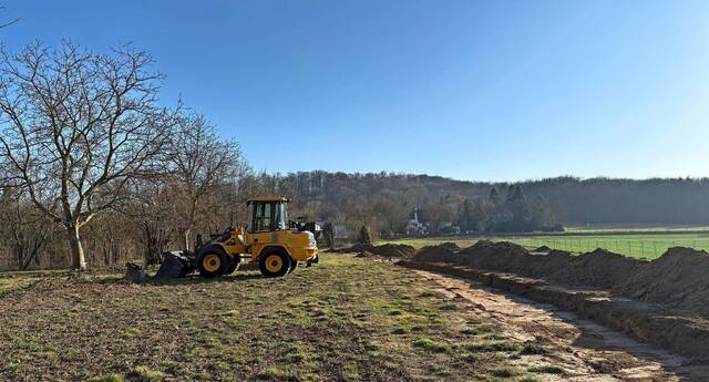 Die Arbeiten für den geplanten Outdoor- und Freizeitpark in Gehrden haben begonnen. Wo vor Kurzem noch eine malerische Schneelandschaft zu sehen war, ist nun eine große Baustelle unter blauem Himmel und Sonnenschein zu sehen. Seit wenigen Tagen sind die Bauarbeiter im Einsatz.