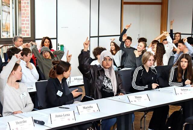 Es war genau 10.30 Uhr, als das dreitägige Politikprojekt im Bürgersaal des Rathauses mit einer simulierten Ratssitzung auf seinen Höhepunkt zusteuerte. Eröffnet wurde die Sitzung von niemand Geringerem als dem „echten“ Vorsitzenden des Rates der Stadt Gehrden, Heinrich Möller (CDU). Er berichtete als Sitzungsleiter beim ersten Tagesordnungspunkt von „75 Stimmberechtigten“. Dann nahm die politische Willensbildung Fahrt auf.
